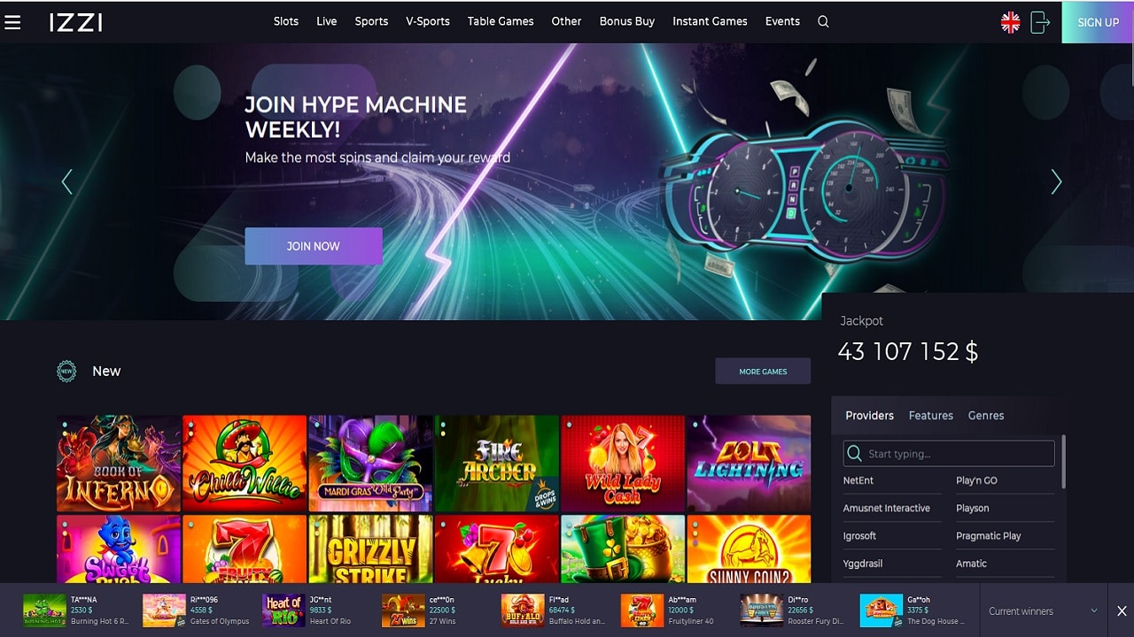 The Izzi Casino section is super convenient thanks to its lobbies and in-lobby sections. Also, there are a range of filters for video slots. As the games portfolio, you will find all the top titles on tap. Altogether, the platform hosts 55+ software providers, meaning you can expect at least 50 new releases per month, adding to what is already a collection of 5,000+ games. Also, if you prefer a particular developer brand or game title, you can use the ‘Provider’ filter and/or ‘Search’ bar. For more in-depth info, check out the points below.