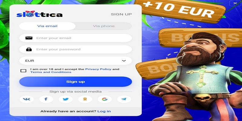 - Go to the Slottica online casino sign up page from this no deposit review