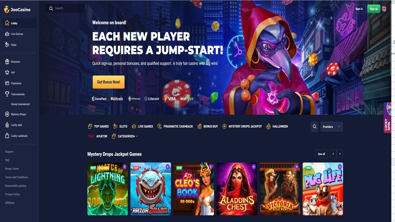 Joo Casino hosts 120+ software providers with 30 of those developers configured to accept crypto currency bets. The platform is also set up to cater to residents of Ireland