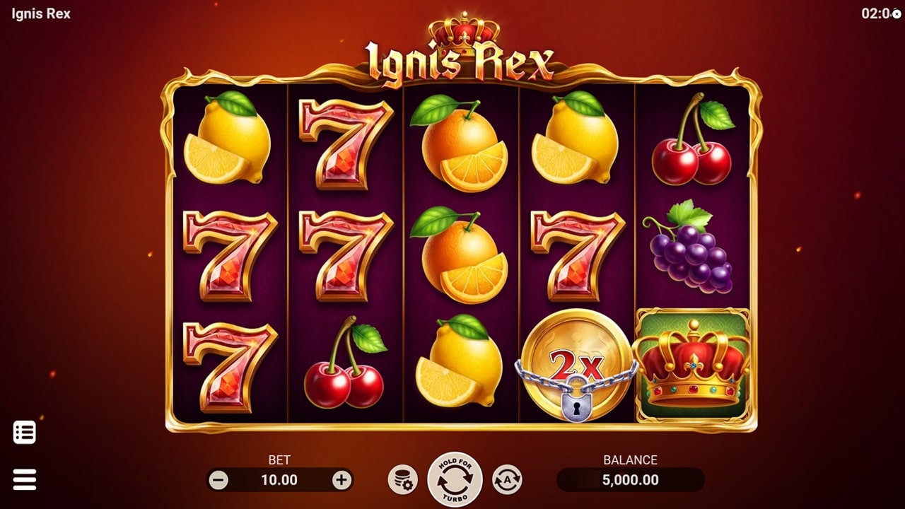 Ignis Rex is a 5-reel, 3-row slot played across 10 fixed paylines. Built around a regal kingdom theme, the reels feature crowns, coins, and royal figures, set against a backdrop of fiery riches. With both instant wins and a bonus feature tied to coins, the game blends classic paylines with a Hold & Win mechanic for bigger rewards.